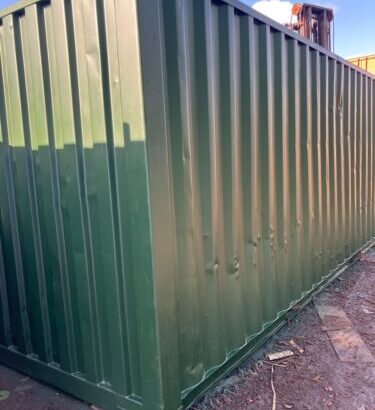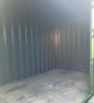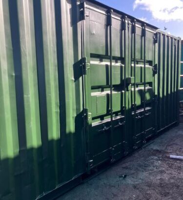 20’ x8’x8’6” shipping container, painted RAL 6007 outside and RAL 7016 inside. Doors moved to the side to allow side loading. Dry, watertight and lockable. Ideal factory, farm, etc, where end loading is not ideal.