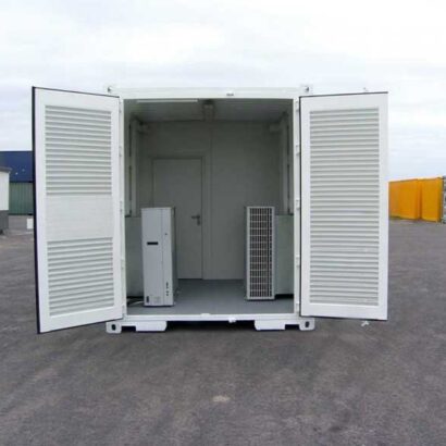 Our shipping container switch rooms are available in 20 foot and 40 foot sizes, and we can customise the switch room to your exact requirements with a wide range of accessories. High powered air conditioners, penetration and gland plates, fire safety systems, emergency push bar doors, ceiling cable trays and uni strut fit-outs and much more are all available in your customised switch room.